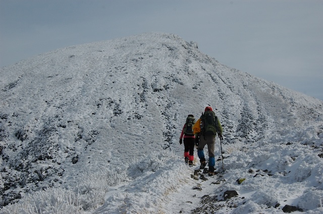初日はロープウェイで手軽に登れる鶴見岳を散策。2日目に凍った御池の上を歩いたり、霧氷が期待できるくじゅう連山を歩きます。積雪は多くないので雪山初心者でも装備があれば登ることができます。
